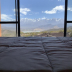 Guests can take in the views of the mountain from the balcony, which also has outdoor furniture.