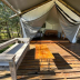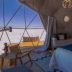 This luxury tent features a terrace as well as a bar. Outdoor dining is also possible at Glamping Los Palmares.