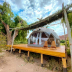 This luxury tent features a terrace as well as a bar. Outdoor dining is also possible at Glamping Los Palmares.