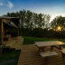 Guests can take in the ambience of the surroundings from an outdoor dining area.
