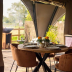 Guests can take in the ambience of the surroundings from an outdoor dining area.