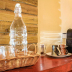 A selection of options including fruit, juice, and cheese are served for breakfast, and breakfast in the room is also available.