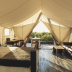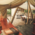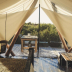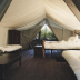 Offering a balcony, this luxury tent also comes with a kitchenette and a bathroom with a shower.