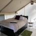 Offering a balcony, this luxury tent also comes with a kitchenette and a bathroom with a shower.