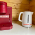 The kitchen has a fridge and a stovetop and there's a bathroom with shower, free toiletries and slippers.