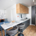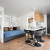 There's also a kitchen in some of the units equipped with a fridge, a stovetop, and a toaster.