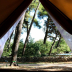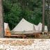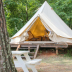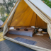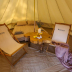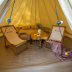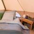 Tents are equipped with double or single beds and offer a seating area and patio.