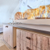 There's also a kitchen in some of the units equipped with a fridge, a stovetop, and a toaster.