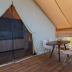 Tents are equipped with double or single beds and offer a seating area and patio.
