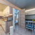 There's also a kitchen in some of the units equipped with a fridge, a stovetop, and a toaster.