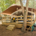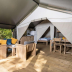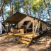 Tents are equipped with double or single beds and offer a seating area and patio.
