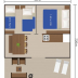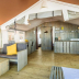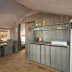 There's also a kitchen in some of the units equipped with a fridge, a stovetop, and a toaster.