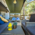 After a day of snorkeling or cycling, guests can relax in the shared lounge area.