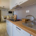 There's also a kitchen in some of the units equipped with a fridge, a stovetop, and a toaster.
