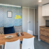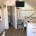 There's also a kitchen in some of the units equipped with a fridge, a stovetop, and a toaster.