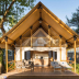 Tents are equipped with double or single beds and offer a seating area and patio.
