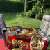The luxury tent has a picnic area.