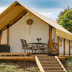 The luxury tent includes a kitchenette with a fridge and a kitchenware, as well as a coffee machine. Towels and bed linen are offered in the luxury tent.