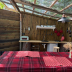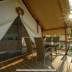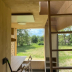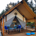 The luxury tent has a picnic area.