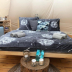 The luxury tent includes a kitchenette with a fridge and a kitchenware, as well as a coffee machine. Towels and bed linen are offered in the luxury tent.