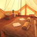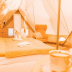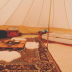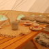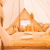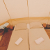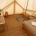 The luxury tent includes a kitchenette with a fridge and a kitchenware, as well as a coffee machine. Towels and bed linen are offered in the luxury tent.