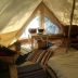 The luxury tent includes a kitchenette with a fridge and a kitchenware, as well as a coffee machine. Towels and bed linen are offered in the luxury tent.
