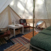 The luxury tent also has a kitchenette, a seating area and a bathroom.