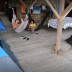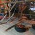 The campground has an outdoor fireplace.