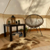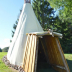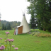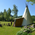The luxury tent has an outdoor fireplace. A outdoor play equipment is also available for guests at Otepaa Indiaanisaun.