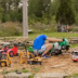 Niiduveere glamping has an outdoor fireplace. A a children's playground is also available for guests at the accommodation.