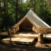 The luxury tent has a picnic area.