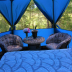 The luxury tent has an outdoor fireplace.
