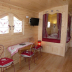 This wooden caravan comes with air conditioning, a private bathroom with shower and toilet, and BBQ facilities. They all have a fully equipped kitchen and a dining area.
