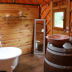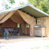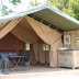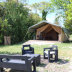 This wooden caravan comes with air conditioning, a private bathroom with shower and toilet, and BBQ facilities. They all have a fully equipped kitchen and a dining area.