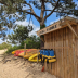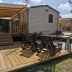 This wooden caravan comes with air conditioning, a private bathroom with shower and toilet, and BBQ facilities. They all have a fully equipped kitchen and a dining area.