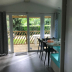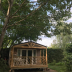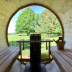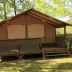 This wooden caravan comes with air conditioning, a private bathroom with shower and toilet, and BBQ facilities. They all have a fully equipped kitchen and a dining area.