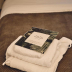 Towels and bed linen are offered in the luxury tent.