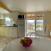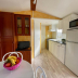 The units have a fully equipped kitchen with dining area, a fridge, coffee machine, and a stovetop.