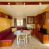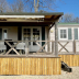 This wooden caravan comes with air conditioning, a private bathroom with shower and toilet, and BBQ facilities. They all have a fully equipped kitchen and a dining area.
