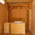 This wooden caravan comes with air conditioning, a private bathroom with shower and toilet, and BBQ facilities. They all have a fully equipped kitchen and a dining area.