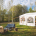 This wooden caravan comes with air conditioning, a private bathroom with shower and toilet, and BBQ facilities. They all have a fully equipped kitchen and a dining area.