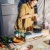 The units have a fully equipped kitchen with dining area, a fridge, coffee machine, and a stovetop.