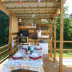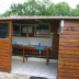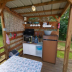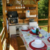 This wooden caravan comes with air conditioning, a private bathroom with shower and toilet, and BBQ facilities. They all have a fully equipped kitchen and a dining area.
