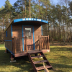 This wooden caravan comes with air conditioning, a private bathroom with shower and toilet, and BBQ facilities. They all have a fully equipped kitchen and a dining area.