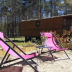 The wooden caravans have a double bedroom and a bathroom. There are 2 bunk beds and a sofa bed. Guests can relax on the terrace.