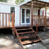 This wooden caravan comes with air conditioning, a private bathroom with shower and toilet, and BBQ facilities. They all have a fully equipped kitchen and a dining area.