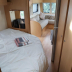 This wooden caravan comes with air conditioning, a private bathroom with shower and toilet, and BBQ facilities. They all have a fully equipped kitchen and a dining area.