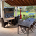 This wooden caravan comes with air conditioning, a private bathroom with shower and toilet, and BBQ facilities. They all have a fully equipped kitchen and a dining area.