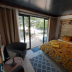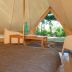 This wooden caravan comes with air conditioning, a private bathroom with shower and toilet, and BBQ facilities. They all have a fully equipped kitchen and a dining area.