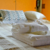 Towels and bed linen are offered in the luxury tent.
